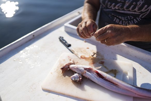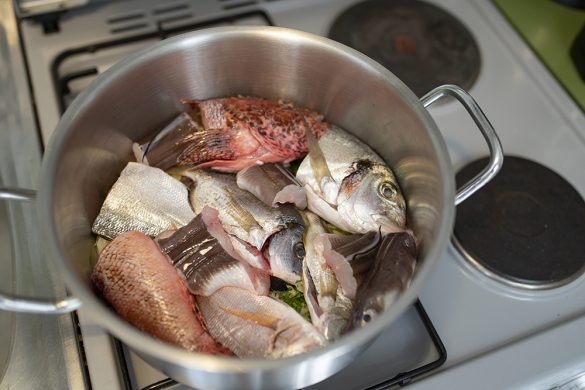 Brudet se radi od više vrsta ribe, a najčešće se koriste škarpina, ugor, cipal, tabinja, trlje, kokot, kanjac, palamida… Ja sam pripremio brudet od ulova tog dana, škarpine, ugora, orade, fratra i rakova.
