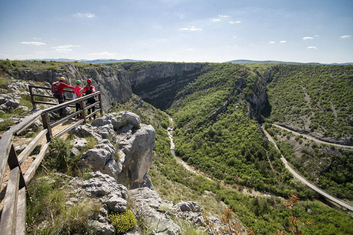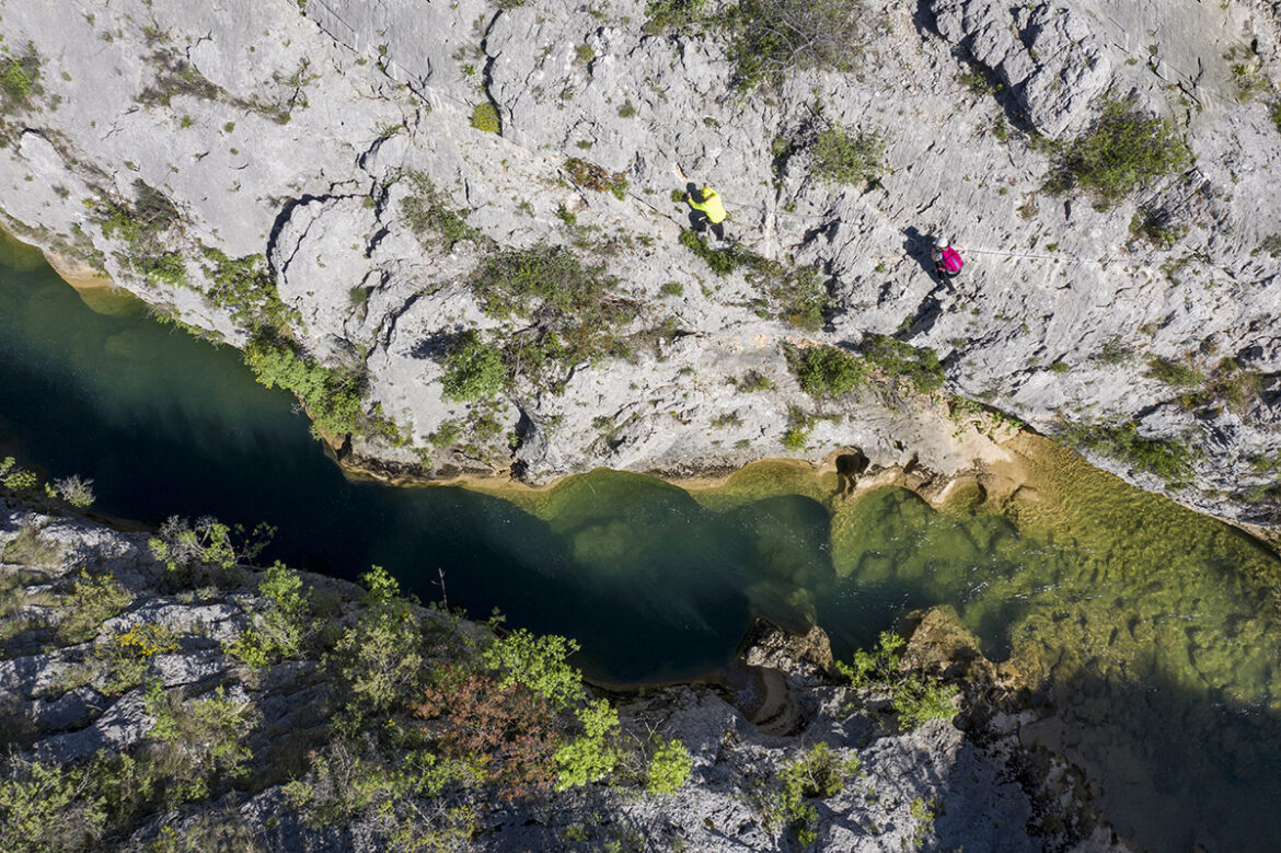 Dolazimo do zaseoka Bašići u blizini Drniša, od Šibenika smo se vozili dvadesetak minuta, i nalazimo se s ekipom iz agencije Šibenik Outdoor Adventure uz čiju ćemo pomoć i vođenje upoznati sve skrivene tajne koje skriva Čikola i ovaj čarobni kanjon. Upravo je proljeće idealno vrijeme za posjet Čikoli, saznajemo od naših vodiča, već u travnju i svibnju, ako su temperature visoke, razina vode počne ozbiljnije opadati. Nakon kratke šetnje uskoro se pred nama pojavljuje prizor od kojeg smo svi zanijemili od divljenja. Okovanu sivim stijenama, daleko u nizini vidimo Čikolu, vijugavu tirkiznu nit na rubovima prošaranu zelenilom drveća.